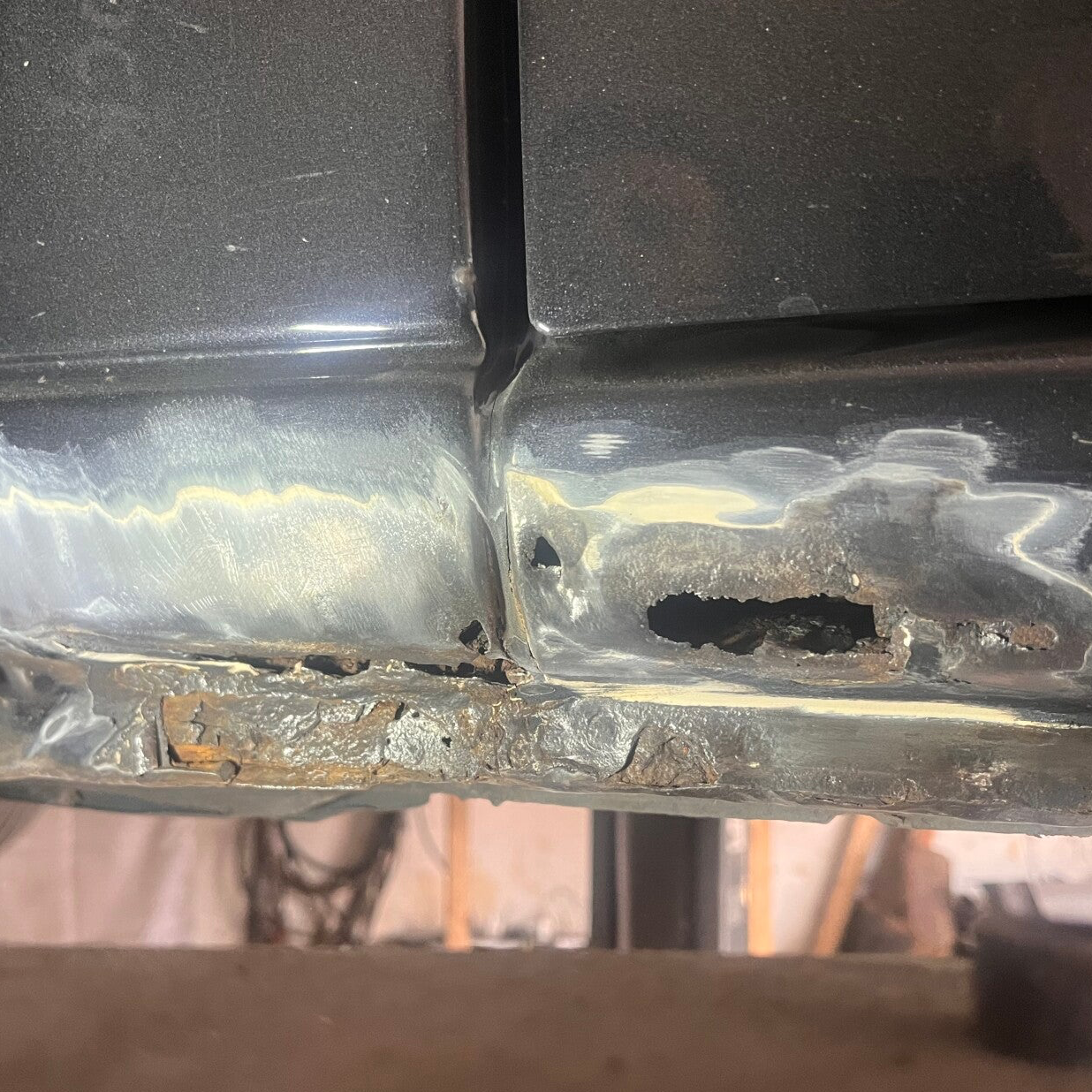 Dieser Patient war so verrostet, dass die Hinterachsaufnahme aus dem Auto herausgerissen wurde.